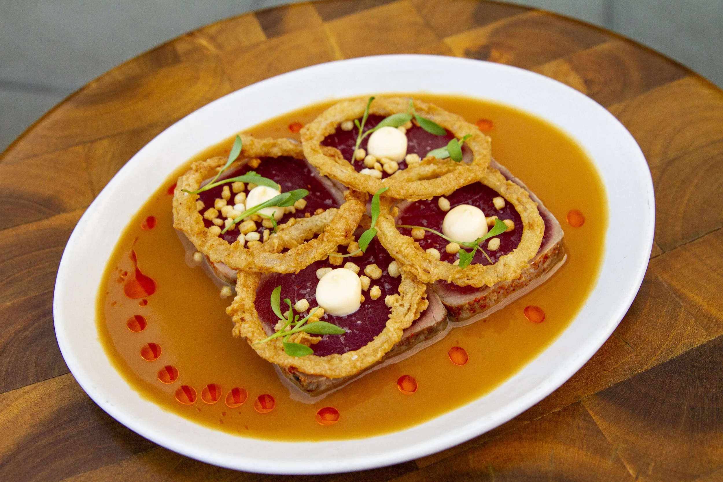 Mahina & Sun’s is another wonderful local restaurant in Waikiki that’s a hidden poolside treasure at the Surfjack Hotel. They offer a perfectly ripe papaya for when I need the simplest form of local food. When the watery farmers of Kualoa Ranch on O’ahu can offer them, Mahina & Sun’s have local oysters with chili pepper water, limu, and lime. When I’m feeling fancy I splurge on the Monchong with locally grown ‘ulu, green beans, cherry tomatoes and chervil. When I’m feeling even fancier, I wear a button-up shirt, socks in my shoes, and order the local Opah (Moonfish) with cucumber, fennel, sumac, flatbread and black olives. Hold up! Black olives don’t grow in Hawai’i? I bite my tongue and enjoy the meal anyway.
