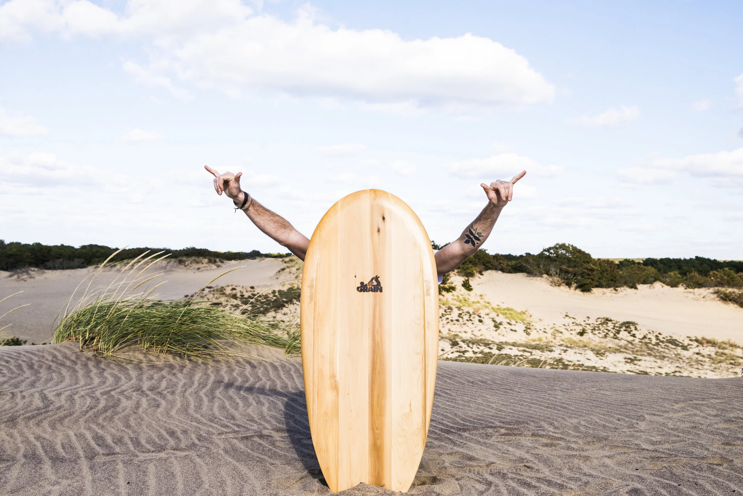 The surf report still says “FLAT,” so we make our own waves at the Walking Dunes. Eighty-foot tall sand dunes “walk” 3.5 feet each year, pushed along by wind. I grab the wooden bellyboard and do some pushing of my own. The board takes to the sand surprisingly well since it was never intended to ride this way. Manny and Jess even get in on the action until we crack the board right down the center. Now I’m the proud owner of a used and abused Grain board.